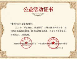 近日,《中国药房》编辑部获得中国期刊协会医药卫生期刊分会与中国高校科技期刊研究会医学期刊专委会联合颁发的公益活动证书,以表彰在2023年“不忘初心,助力基层”主题实践系列活动中,《中国药房》编辑部积极参与相关赠刊和送服务活动,彰显的药学期刊编辑团队的社会责任与担当。此次“不忘初心,助力基层”主题实践...