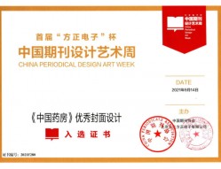 《中国药房》杂志入选中国期刊协会首届“方正电子”杯中国期刊设计艺术周活动“优秀封面设计”奖。该奖项为中国期刊协会为推动期刊出版“做强内容、做好传播、做优服务、做美产品、做大产业”,引领我国期刊高质量发展,与北京北大方正电子有限公司联合开展的艺术周活动。活动共纳入823种期刊,经活动组委会初审和专家评...