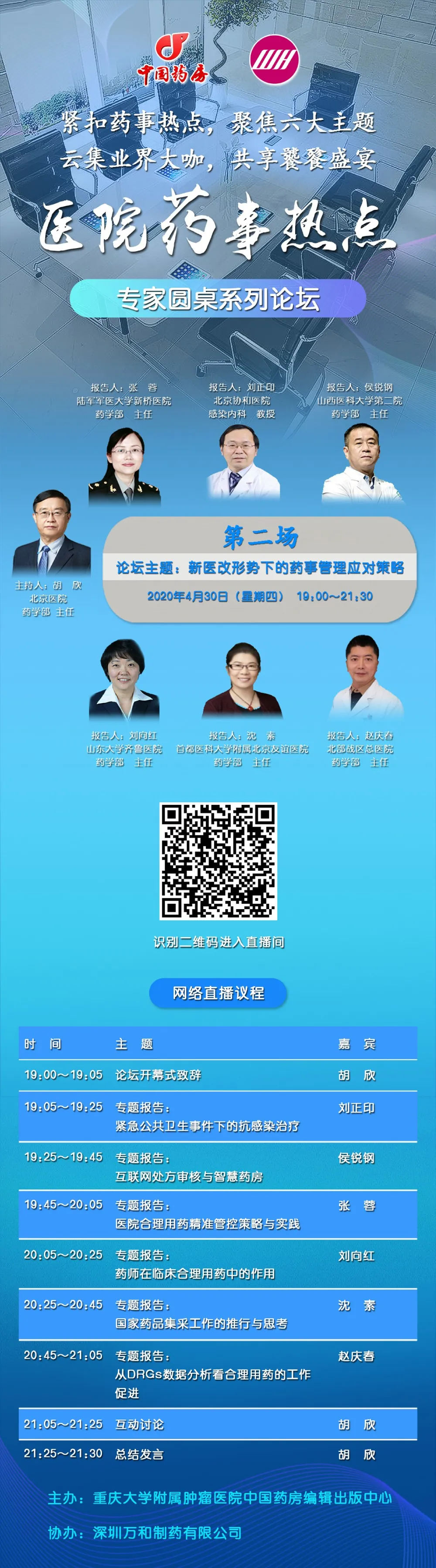 “医院药事热点”专家圆桌系列论坛(第二场)网络直播即将开启!